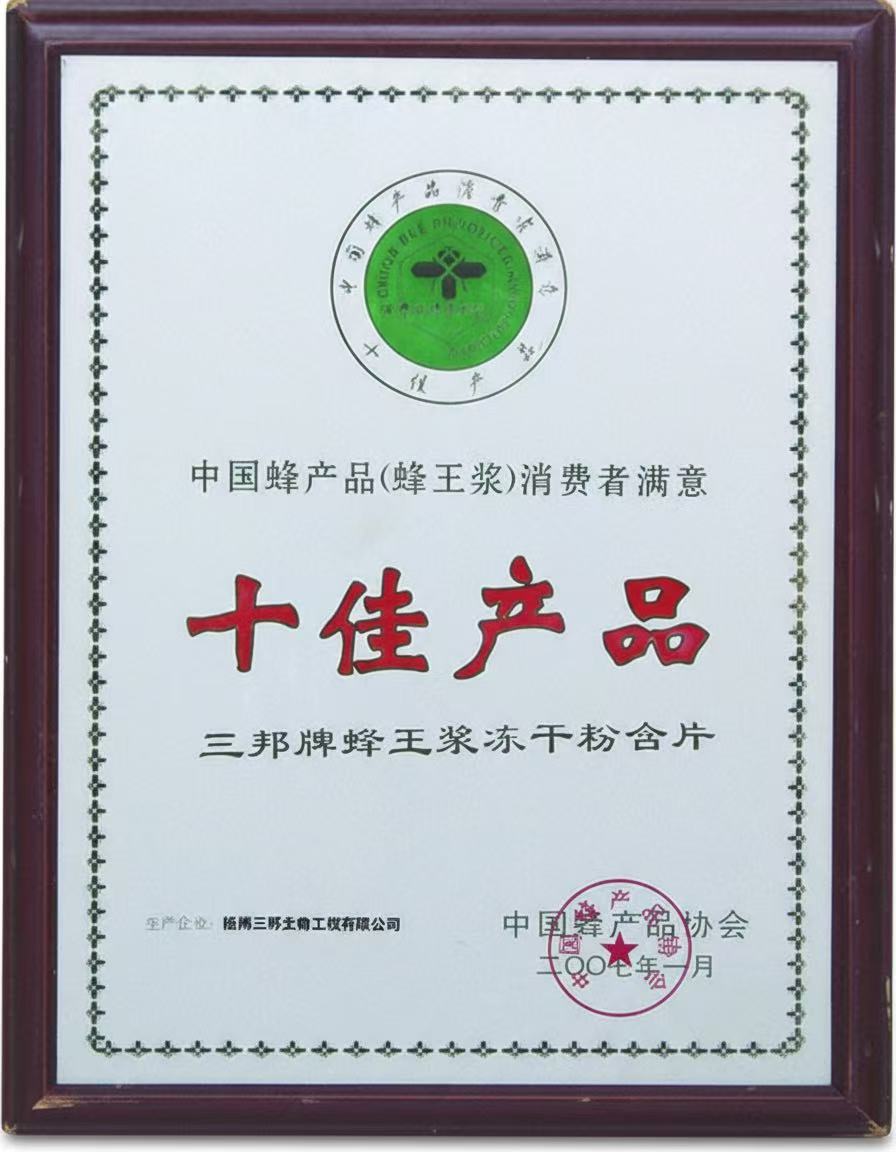 中國蜂產(chǎn)品消費(fèi)者滿意十佳產(chǎn)品